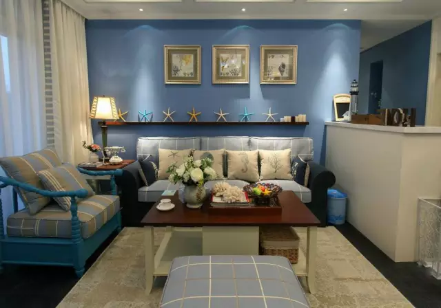 一進門就被海洋的色調(diào)所吸引,簡單的地中海風格搭配,詮釋著浪漫與溫馨