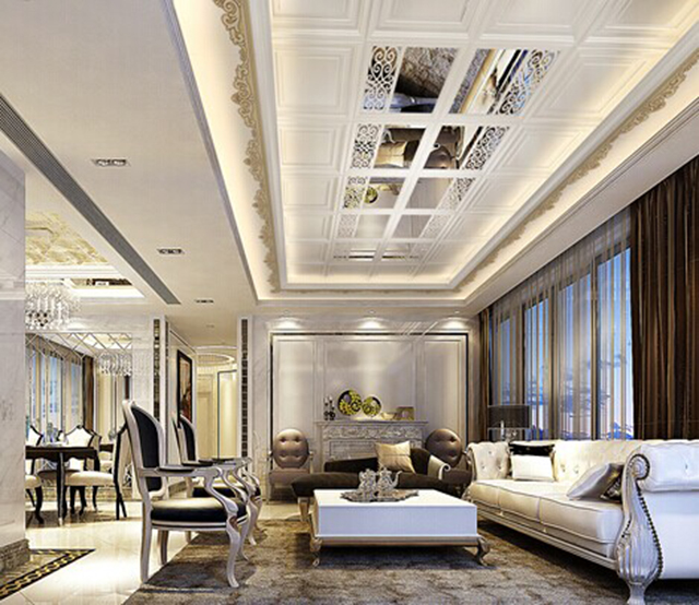 凹凸式吊頂是指表面具有凹入或凸出構(gòu)造處理的一種吊頂形式,這種吊頂造型復(fù)雜富于變化、層資感強(qiáng)、適用于廳、門廳、餐廳、等頂面裝飾。它常常與燈具(吊燈、吸頂燈、筒燈、射燈等)搭接使用。