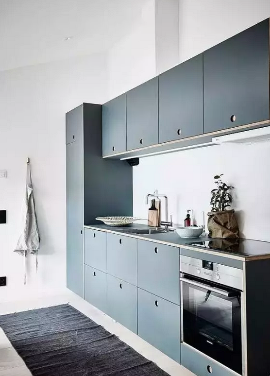 藍(lán)色櫥柜也很常見,但絕不是辣眼睛的熒光藍(lán),而是深藍(lán)、蒂芙尼藍(lán),淺藍(lán),這些都是適合櫥柜的顏色。