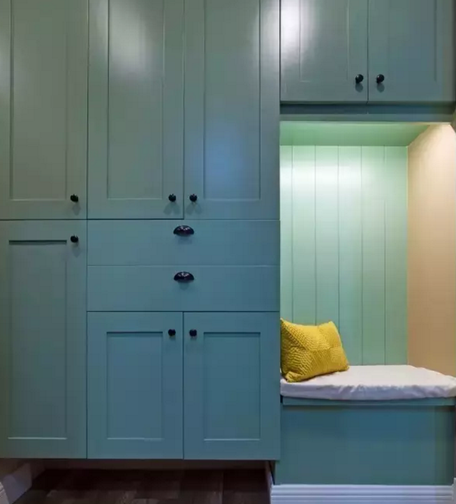 其實鞋柜的款式多種多樣,你可以按照自己喜歡的樣子來定制,但不管是什么樣的鞋柜最好都要具備這兩種特質(zhì):底部懸空+換鞋凳。