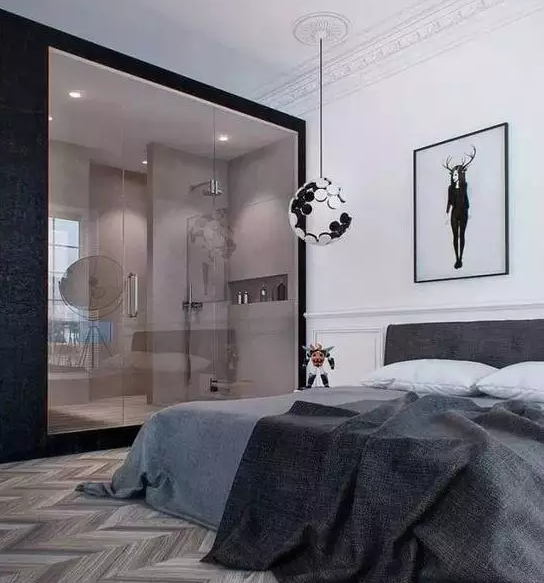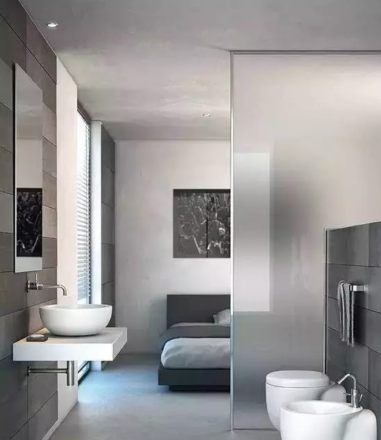 1、主臥內(nèi)的衛(wèi)生間可以在保持與房間風格一致的前提下,按照個人的喜好用防水材料來裝修。