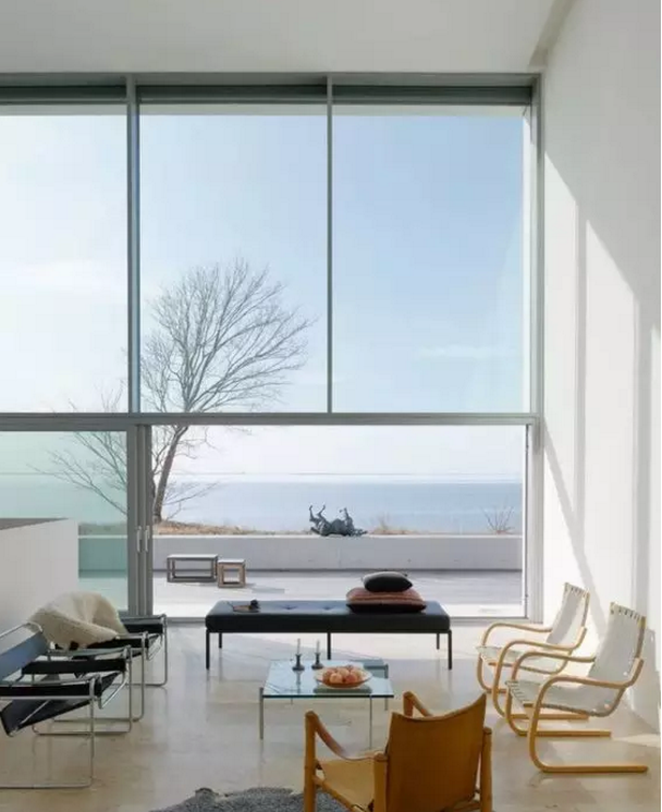 大面積的固定窗也很受歡迎,很好的取到室外的美景,它不僅采光好,而且密封、隔熱性較好,但是不能開啟,只能用在家里的某一部分,因為它不能開窗換氣。