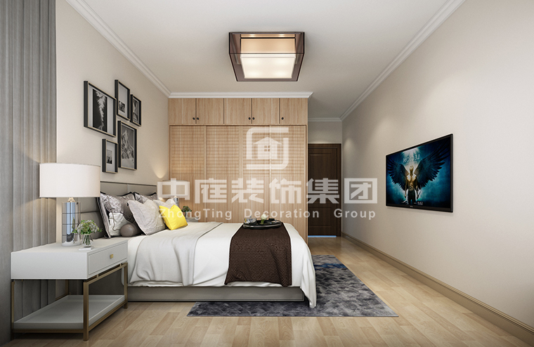 臥室照片墻怎么做?照片墻的處理最簡單的方法就是將幾幅風格類似、色調(diào)一致的相片用一樣材質(zhì)的相框裝裱,然后有規(guī)律的組合擺放在臥室墻壁上。上面臥室床背景墻效果圖中的臥室空間照片墻的處理就是典型的案例,因為空間整體相對素雅干凈,照片墻中照片的選用為黑白色調(diào),顏色百搭,不會出錯,且與整個灰白墻面配合融洽。幾幅相框橫豎排放,但整體結(jié)構(gòu)規(guī)則,因此不顯突兀雜亂。