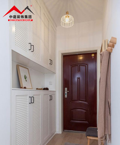 玄關(guān),進(jìn)來就如春風(fēng)拂面一般清新;設(shè)計(jì)師在設(shè)計(jì)鞋柜上美觀與實(shí)用相結(jié)合,并且大大增加了儲物功能。上下兩層,不是同一個(gè)季節(jié)的鞋子可以放在上面一層好好收起來。
