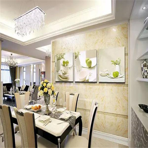 餐廳是進餐場所,餐廳應(yīng)營造出一種能夠增進食欲、熱情好客的畫面氛圍,給人新鮮清爽的就餐感覺。因此可以選擇一些果蔬、插花、靜物、自然風(fēng)光等題材的掛畫;如有吧臺,可掛一些對應(yīng)酒杯洋酒的現(xiàn)代油畫。