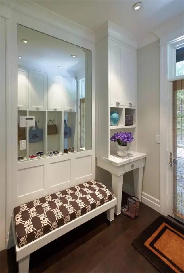 在中國(guó),很多的家庭會(huì)選擇玄關(guān)放置鞋柜,這樣鞋子有地方去了,可是不知道大家發(fā)現(xiàn)沒(méi)有,包包和外套就要去找沙發(fā)放啦,其實(shí)如果能夠在門(mén)口玄關(guān)處放置一個(gè)小型衣帽間,不僅解決了家里包包外套亂放的現(xiàn)象,還幫您實(shí)現(xiàn)了衣帽間的夢(mèng)想呢!下面是一些比較好的玄關(guān)設(shè)計(jì)案例,希望能在您家裝修上為您添加創(chuàng)意。