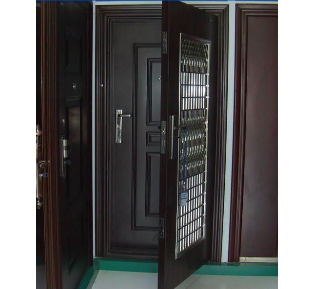 鋼木門分兩種,一種是裝甲門,中間是鋼板,門扇四周由鋼板扣合而成,一般作為防盜門使用。