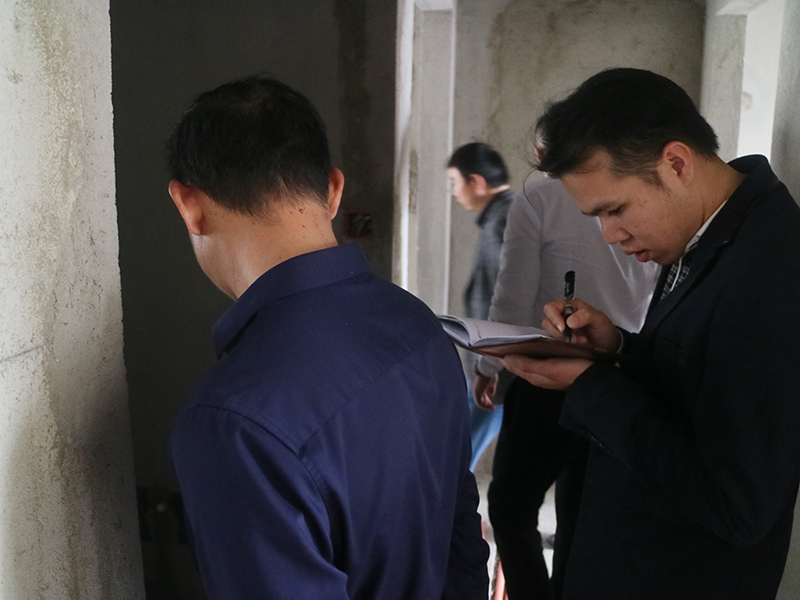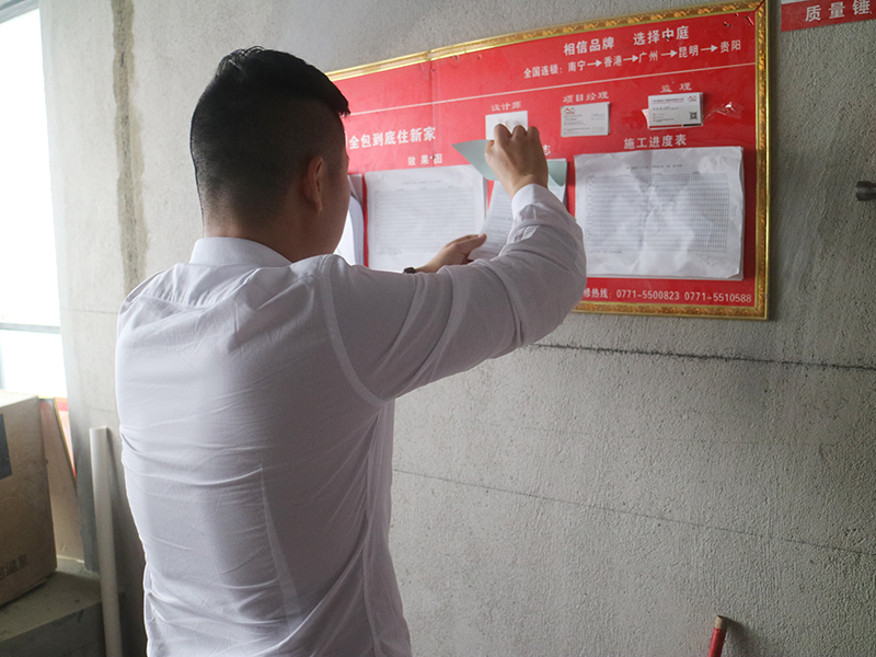 集團(tuán)工程質(zhì)量管理中心吳總表示:為了對業(yè)主的家有保障,保證施工工地正常進(jìn)行,哪怕是一個入戶門保護(hù)的門貼,我們都要仔細(xì)認(rèn)真的做。