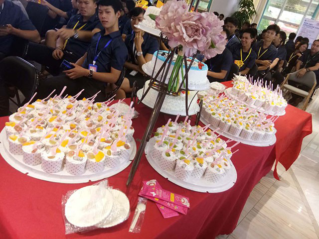 開始切蛋糕,并把蛋糕送到每一個(gè)人的手里,讓每個(gè)人都感受到了生日的喜悅。