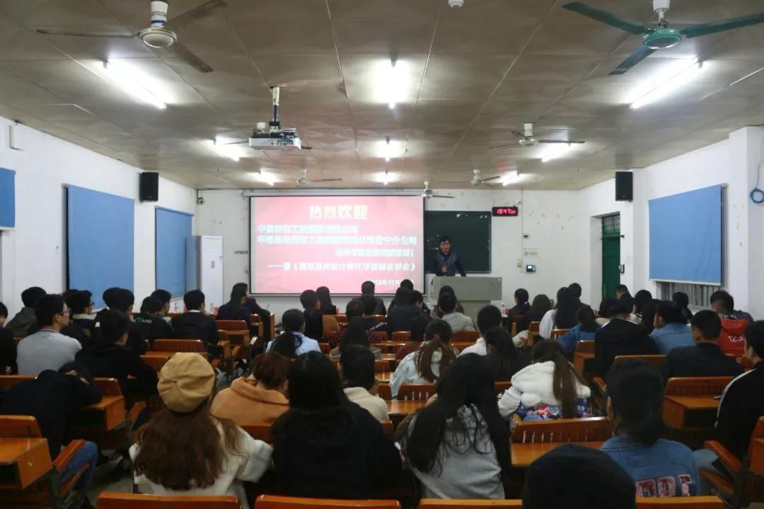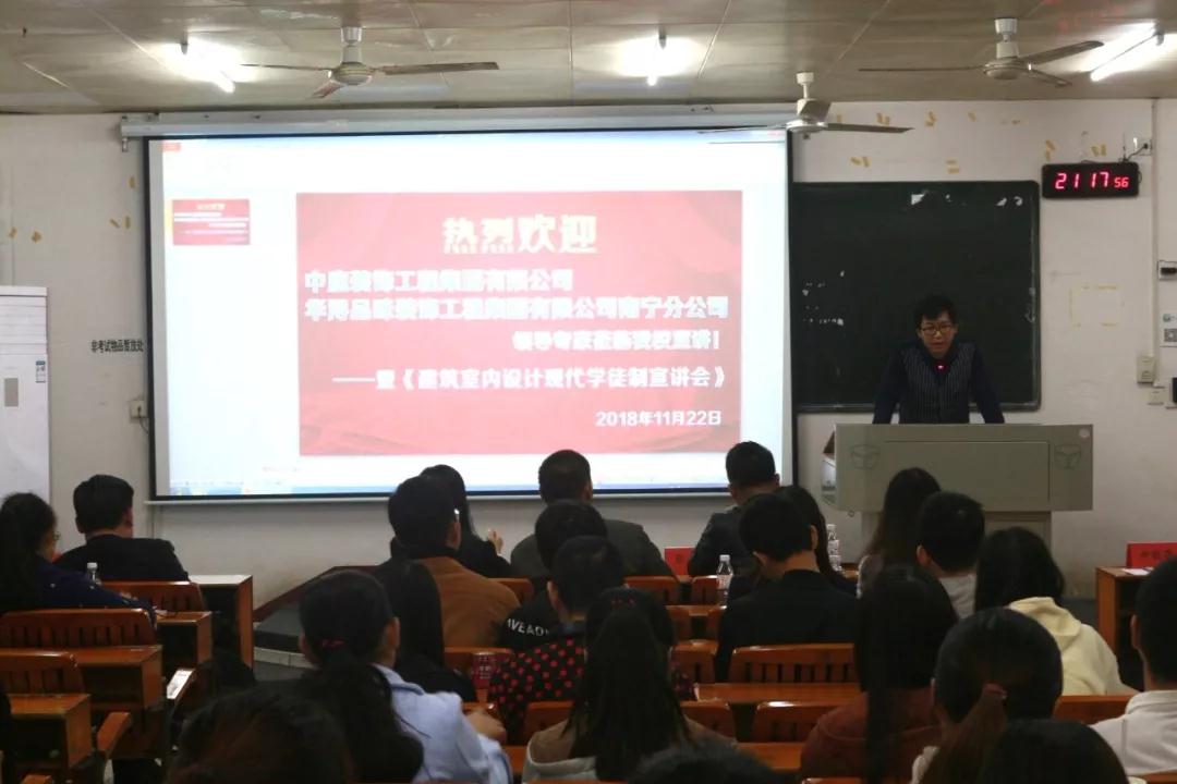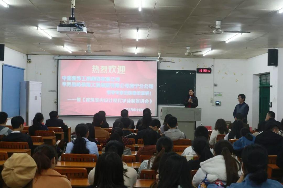 在前期的籌備活動中,已邀請過廣西農(nóng)業(yè)職業(yè)技術(shù)學(xué)院老師和學(xué)生來中庭裝飾集團(tuán)進(jìn)行過參觀與交流,彼此都留下非常好的印象,2018年11月22日,我公司張立安張總帶領(lǐng)營銷三部蘇家毅蘇經(jīng)理和人力資源部黃紅娟黃主管等人去到學(xué)院進(jìn)行宣講,讓老師和學(xué)生們更加了解中庭裝飾集團(tuán),讓他們明白,選擇我們,是正確的。