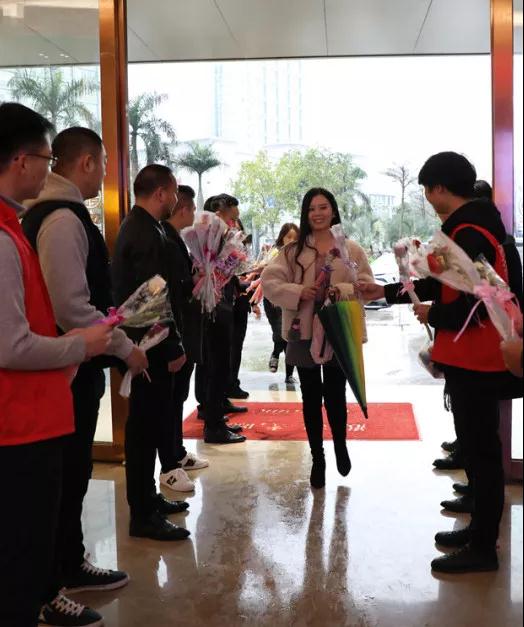 ▲營(yíng)銷(xiāo)管理中心王總給中庭女神送上節(jié)日禮物