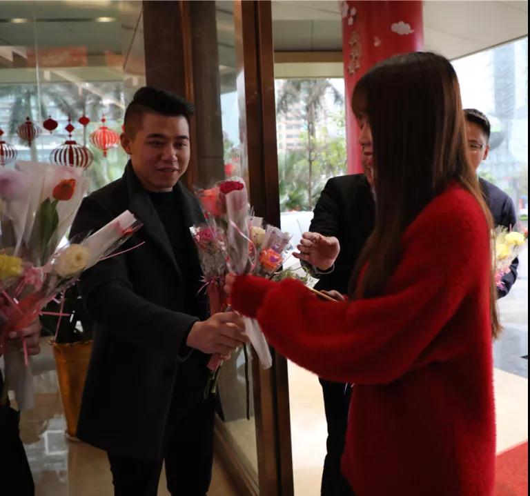 ▲集團(tuán)總裁丁總給中庭女神送上節(jié)日禮物