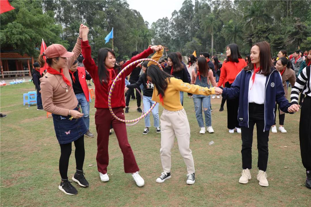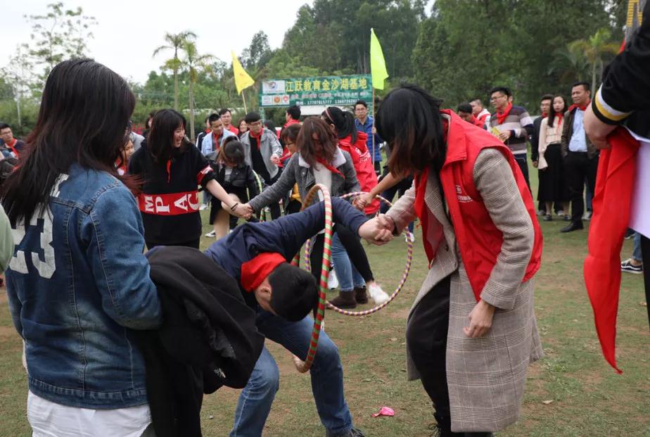 游戲規(guī)則:小組人員手牽手,從第一個(gè)人傳遞拉呼啦圈至最后一人,中途隊(duì)員不能放開(kāi)手或者用手去接觸呼啦圈,否側(cè)重來(lái),完成任務(wù)團(tuán)隊(duì)。