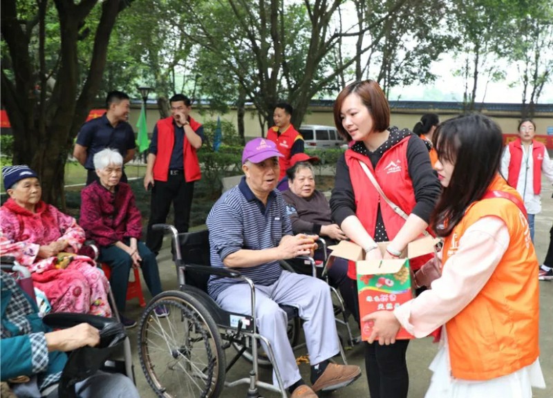 ▲集團副總裁湯炬峰(圖中)帶隊到達敬老院
