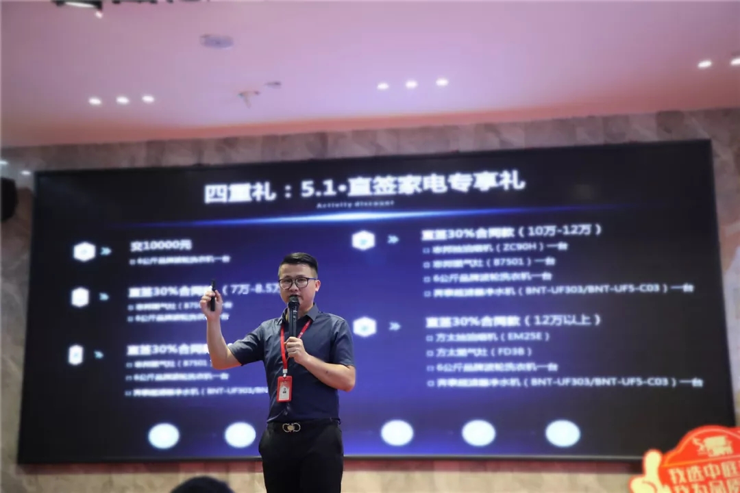 ▲運(yùn)營三部總經(jīng)理張立安做活動優(yōu)惠宣導(dǎo)
