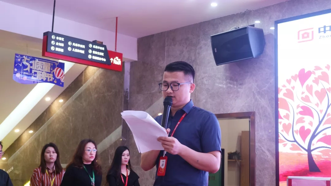 中庭裝飾集團黨支部書記張立安向全體員工發(fā)起愛心捐款倡議