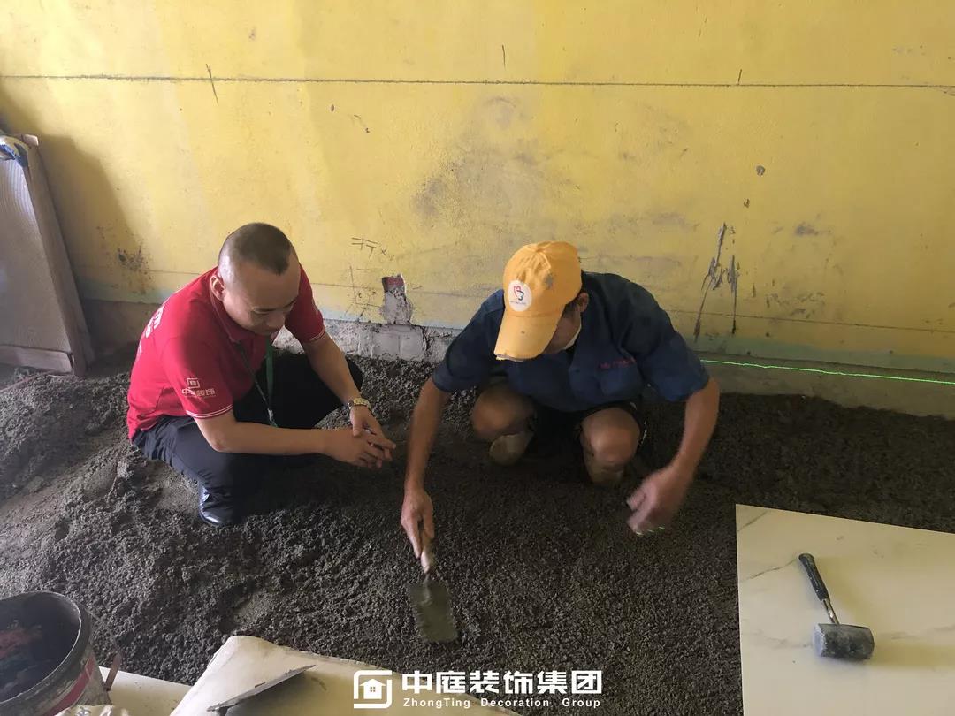 ▲總裁丁總現(xiàn)場與工人師傅詳細講解工藝標準