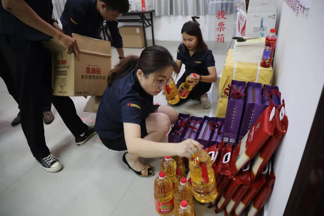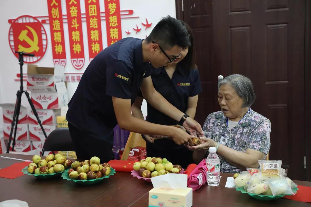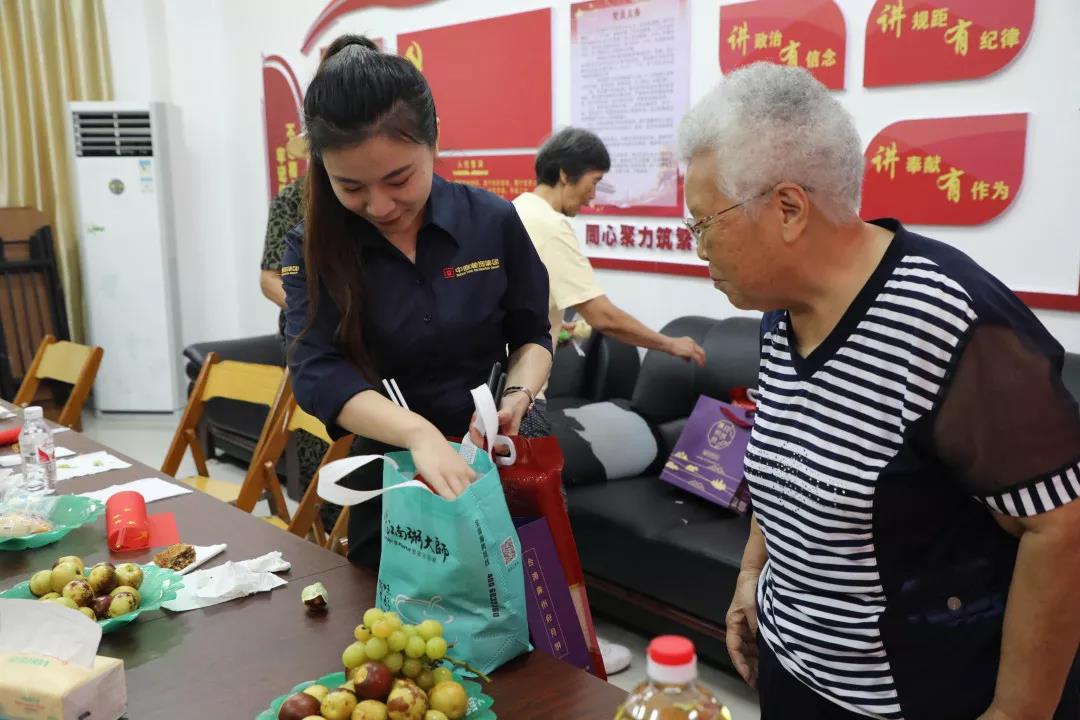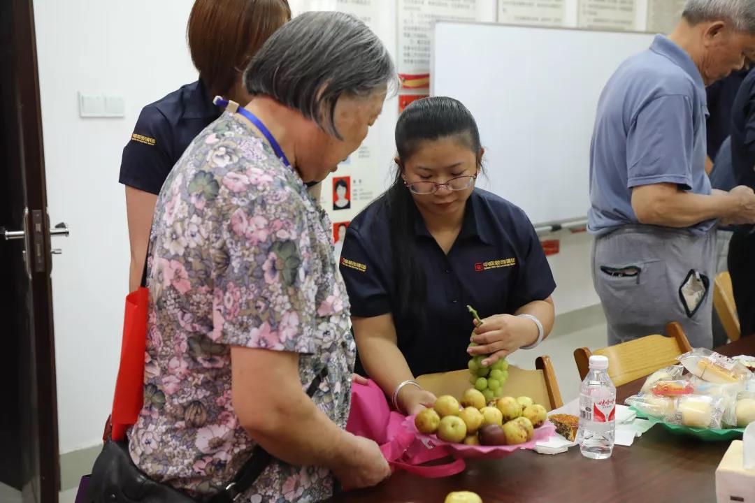 活動結(jié)束之際,我們中庭家人們給老人家送上中秋禮物,并幫老人家裝好方便攜帶回去。