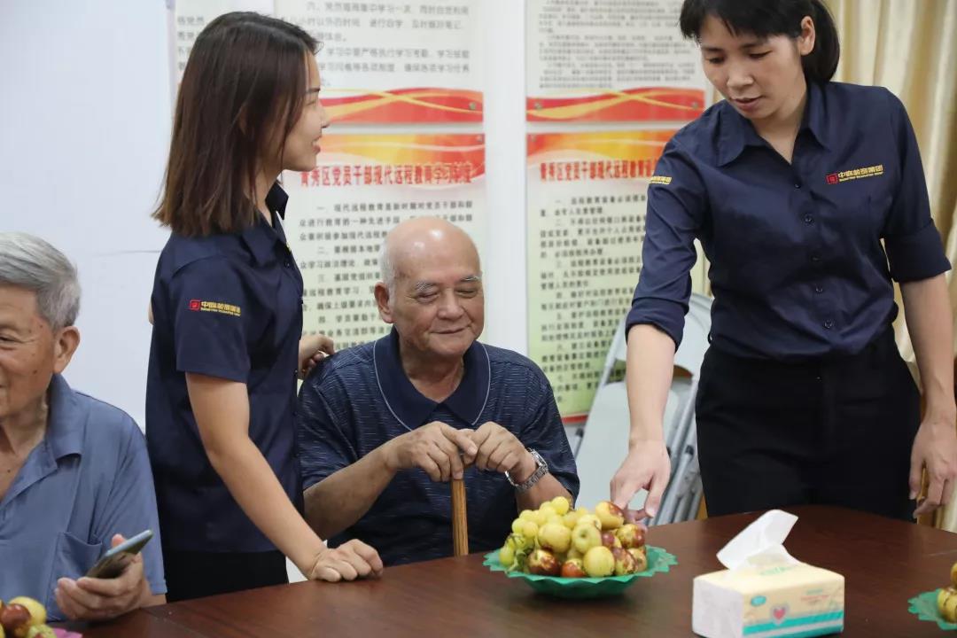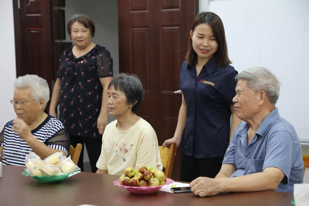 ▲老人們陸續(xù)到達(dá)社區(qū)會議室中,中庭的家人們與老人們與他們親切交流,了解老人們的日常生活和健康情況,叮囑他們要保重身體,并把葡萄和青棗一一送到他們手中,一時間,老人們個個臉上洋溢著喜悅的笑容,會議室內(nèi)暖意融融,處處洋溢著歡笑。