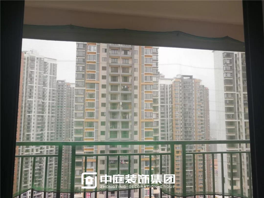 防護(hù)掛網(wǎng)懸掛到位。綠色防護(hù)掛網(wǎng),醒目的顏色為工人的施工安全保駕護(hù)航。細(xì)密的掛網(wǎng)也避免了在陽(yáng)臺(tái)切割瓷磚時(shí)造成大量的灰塵飄逸出去,保護(hù)小區(qū)環(huán)境。