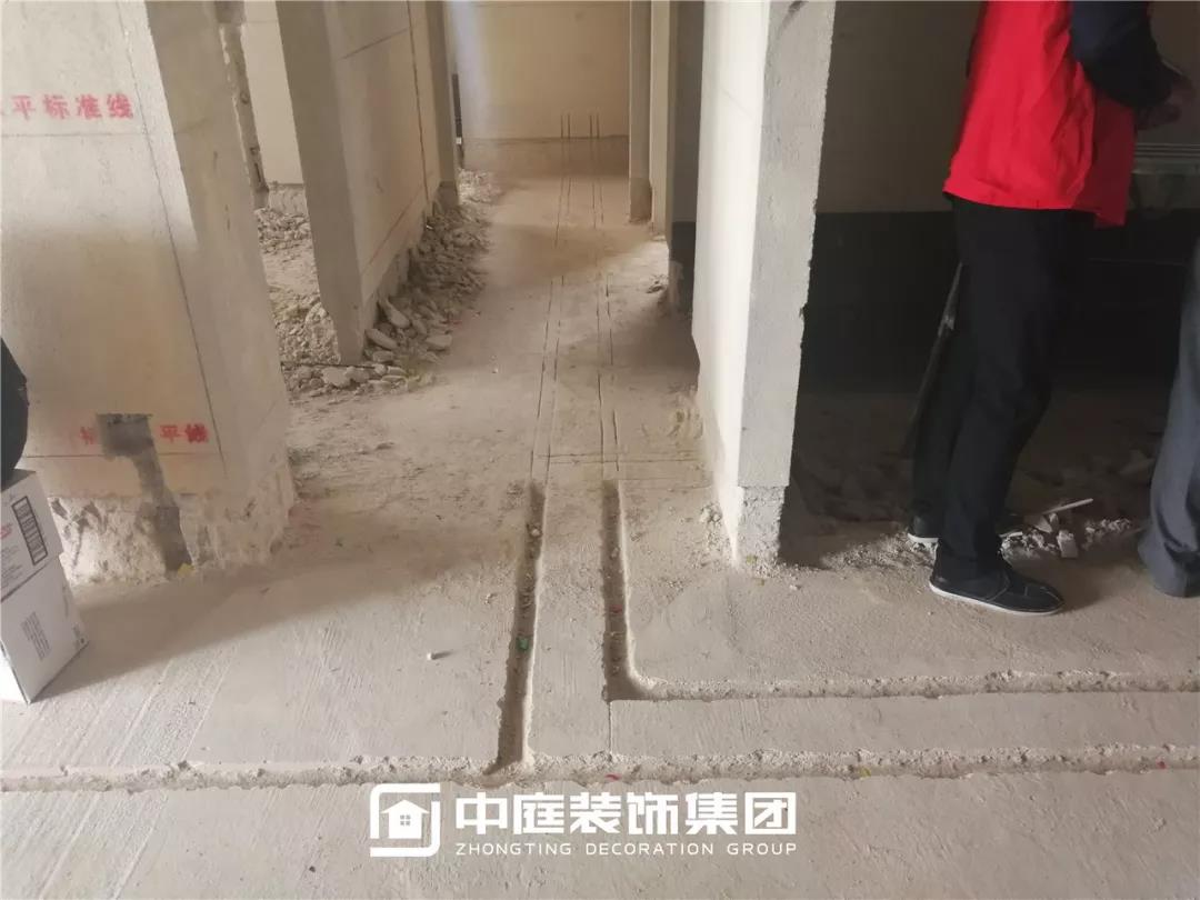 施工現(xiàn)場(chǎng)線管鋪設(shè)橫平豎直,按照集團(tuán)施工規(guī)定使用鐵皮卡扣固定,管和管之間留有足夠縫隙,以便鋪設(shè)地磚時(shí)水泥砂漿進(jìn)入管下,避免地磚后期出現(xiàn)空鼓。