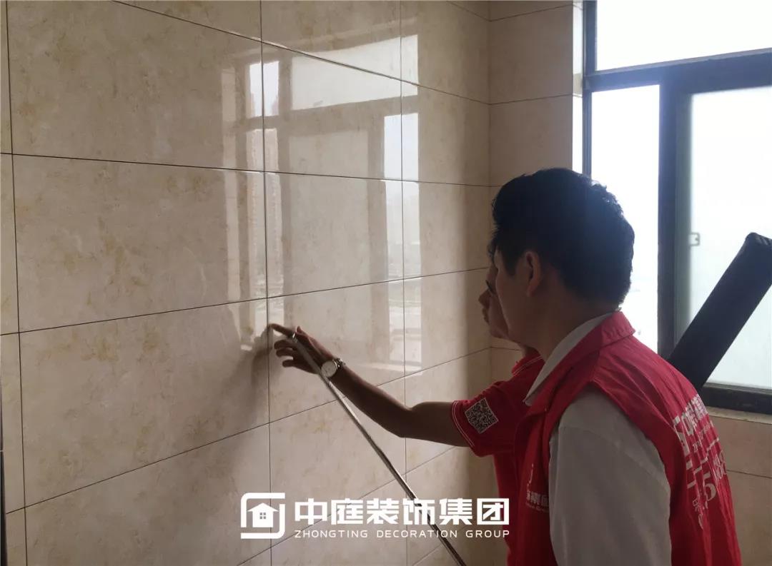 檢查瓷磚鋪貼是否平整干凈,有無(wú)錯(cuò)貼漏貼;以及鋪貼縫隙是否均勻,有無(wú)缺角、裂紋。