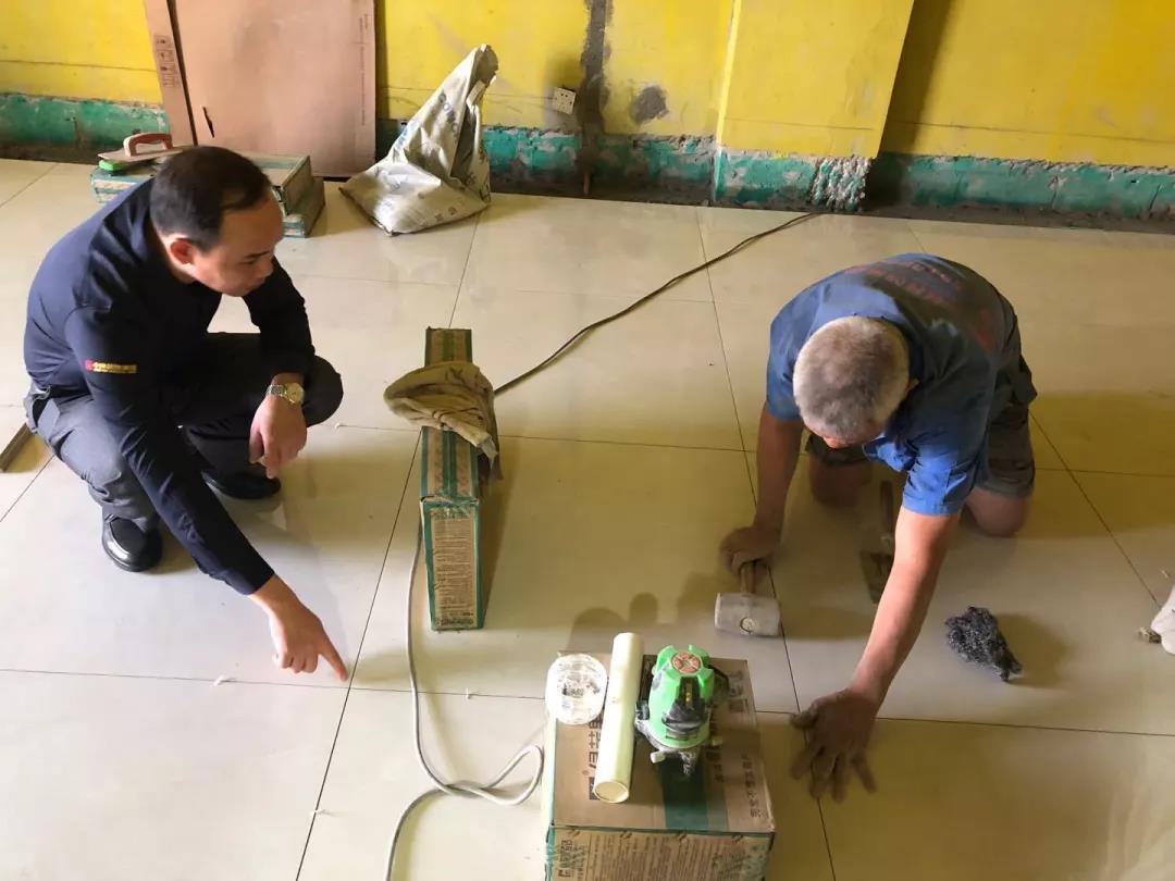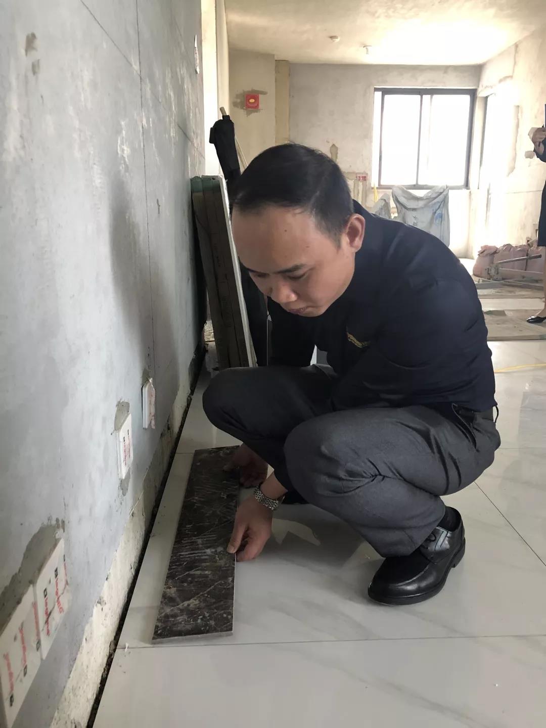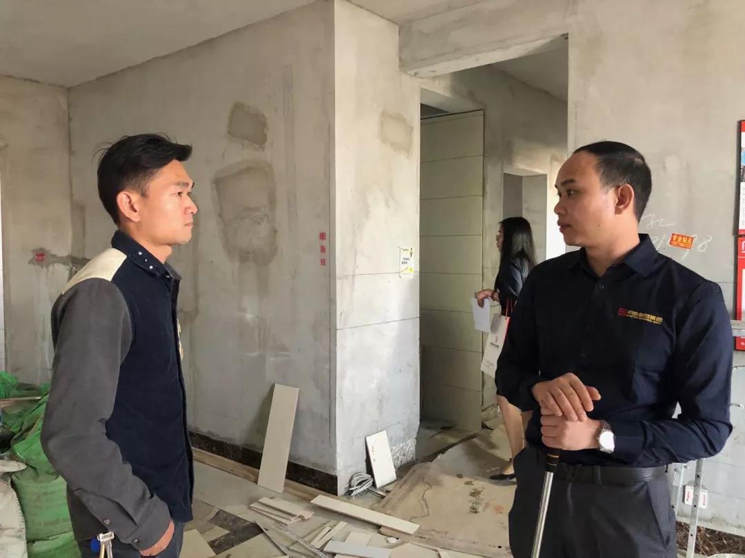 距離廣西教育廳住宅裝修集體開工儀式已過去一月有余,部分工地施工相繼進入鋪磚階段。作為教育廳住宅裝修工程總指揮,肩負(fù)著集團的使命和業(yè)主朋友們的信任,集團副總裁、工程質(zhì)量管理中心總經(jīng)理吳文戰(zhàn)時刻牽掛著教育廳工地進展情況。10月30日,吳總帶領(lǐng)質(zhì)管中心工程管理團隊赴工地現(xiàn)場對工程材料、質(zhì)量和服務(wù)三大項進行突擊檢查!