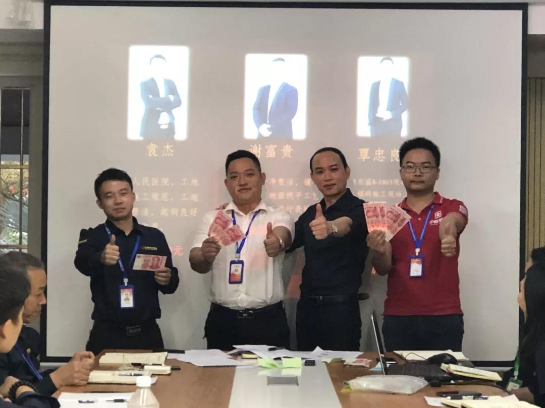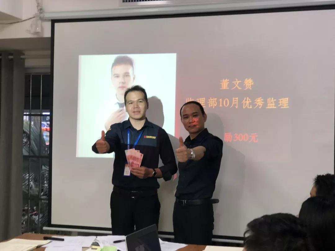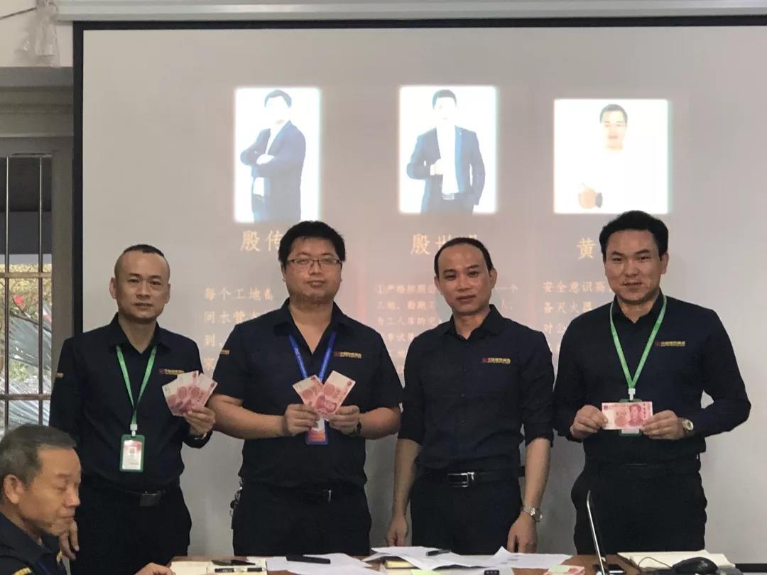 吳總(右一)為項(xiàng)目經(jīng)理殷傳高頒發(fā)月度獎(jiǎng)金