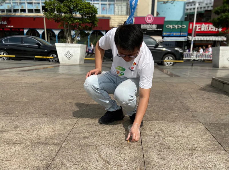 黨支部張書(shū)記撿拾煙頭