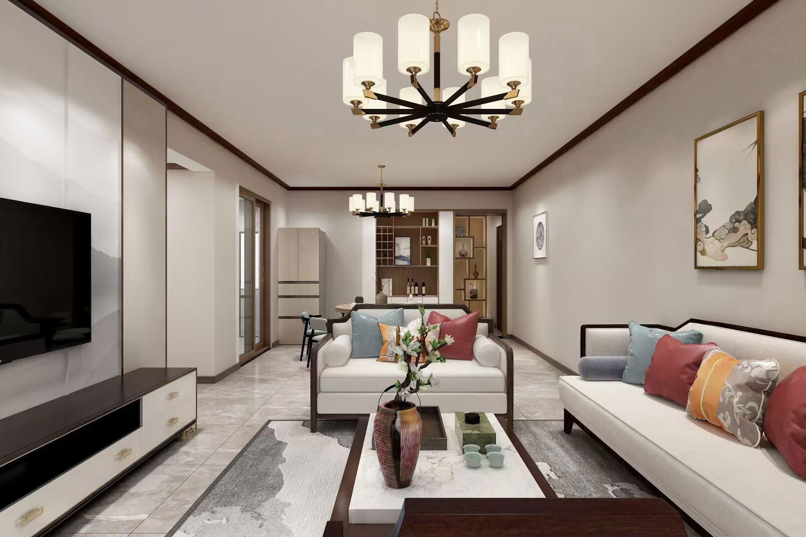 瀏覽量:562本案例總面積為148㎡,整體屬于新中式風(fēng)格,室內(nèi)空間講究主次分明、追求合理的空間布局和家具擺設(shè)。同時(shí)非常強(qiáng)調(diào)融入自然,并且注重人與空間的關(guān)系。提取傳統(tǒng)家居的精華元素和生活符號進(jìn)行合理的搭配、布局,使整體的家居設(shè)計(jì)中既有中式家居的傳統(tǒng)韻味,又能夠讓傳統(tǒng)元素更具筒練、大氣、時(shí)尚的特點(diǎn)。