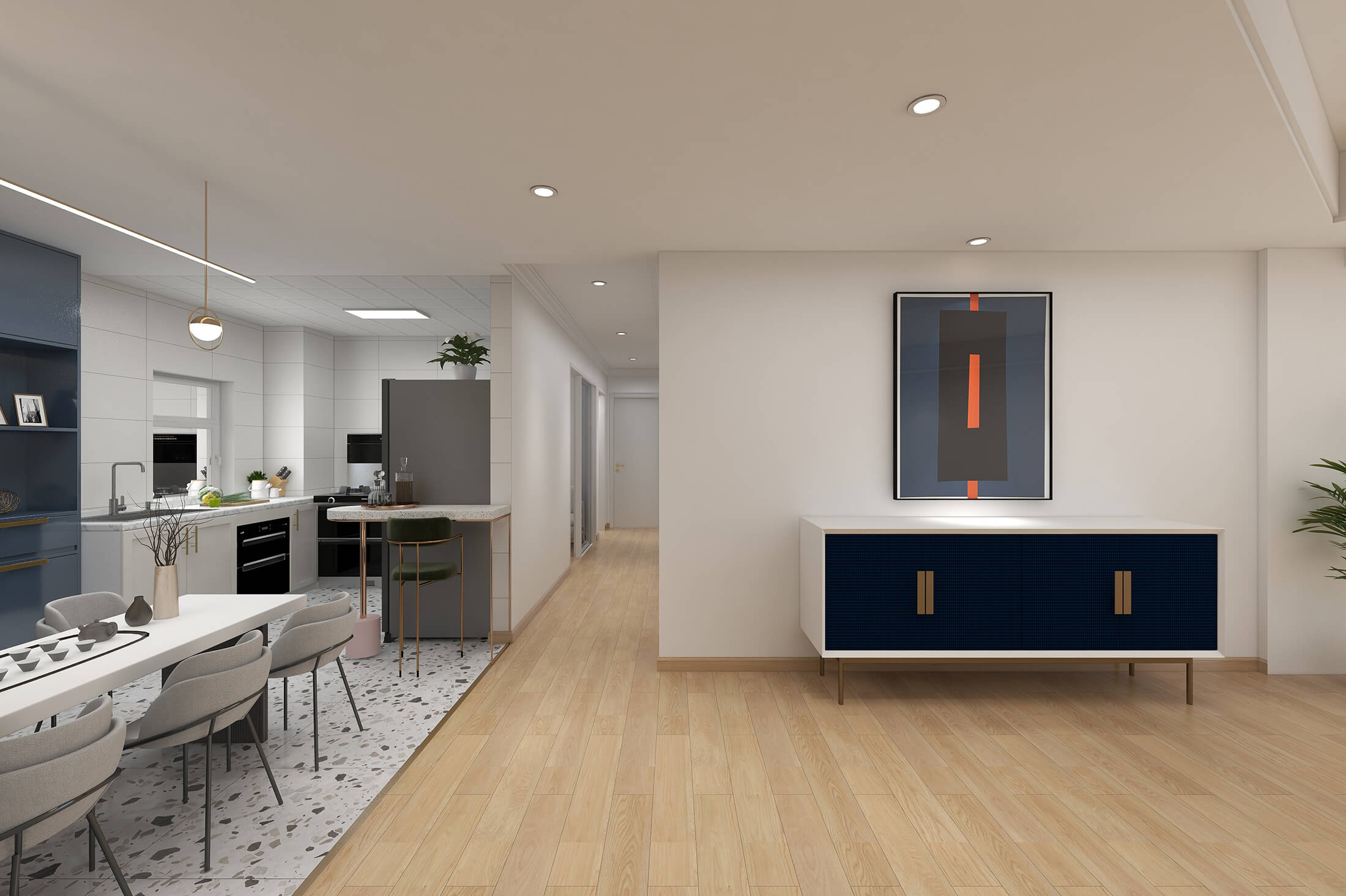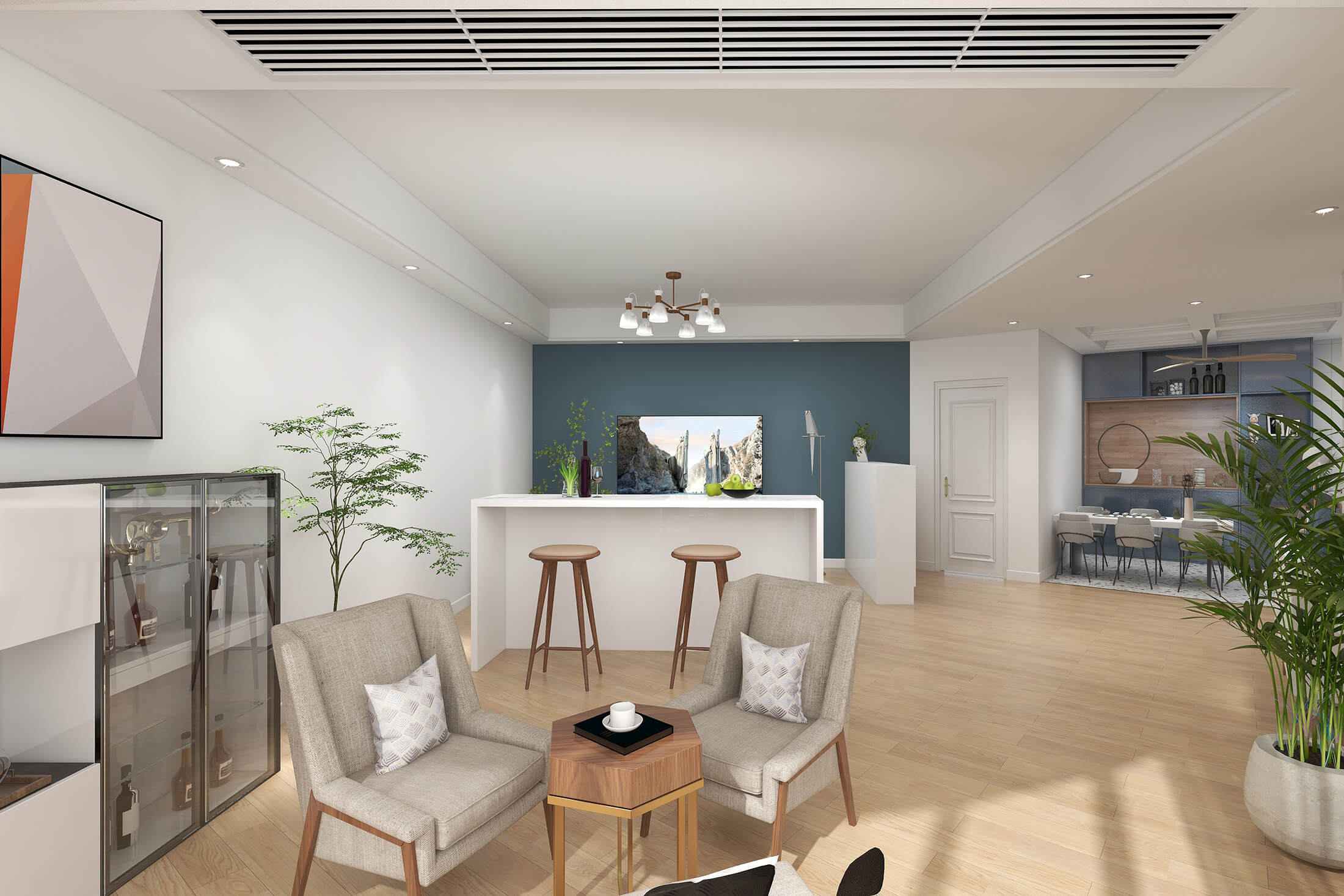瀏覽量:382本案戶(hù)型為:4室2廳2衛(wèi),總面積119㎡?,F(xiàn)代簡(jiǎn)約風(fēng)格,顧名思義,就是讓所有的細(xì)節(jié)看上去簡(jiǎn)潔大氣,業(yè)主追求簡(jiǎn)素淡雅之美,希望加入現(xiàn)代元素。設(shè)計(jì)師將材料、色彩、燈光及元素進(jìn)行簡(jiǎn)化,用簡(jiǎn)潔的視覺(jué)效果營(yíng)造出淡然清雅、寧?kù)o超脫的氛圍。