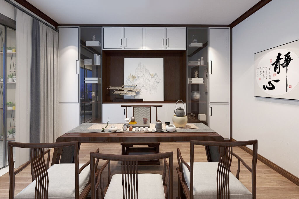 瀏覽量:400在空間上的裝飾多采用簡潔硬朗的直線條,直線裝飾在空間中的使用,不僅反映出現(xiàn)代人追求簡單生活的居住要求,迎合主人家對中式家具的喜愛,中式的家具追求內斂、質樸的設計風格,更加實用、更富現(xiàn)代感。新中式風格的古典高雅又含有現(xiàn)代風格的時尚元素,通過對傳統(tǒng)文化的認識,將現(xiàn)代元素和傳統(tǒng)元素結合在一起,以現(xiàn)代人的審美需求來打造富有傳統(tǒng)韻味的事物,讓傳統(tǒng)藝術在當今社會得到合適的體現(xiàn)。