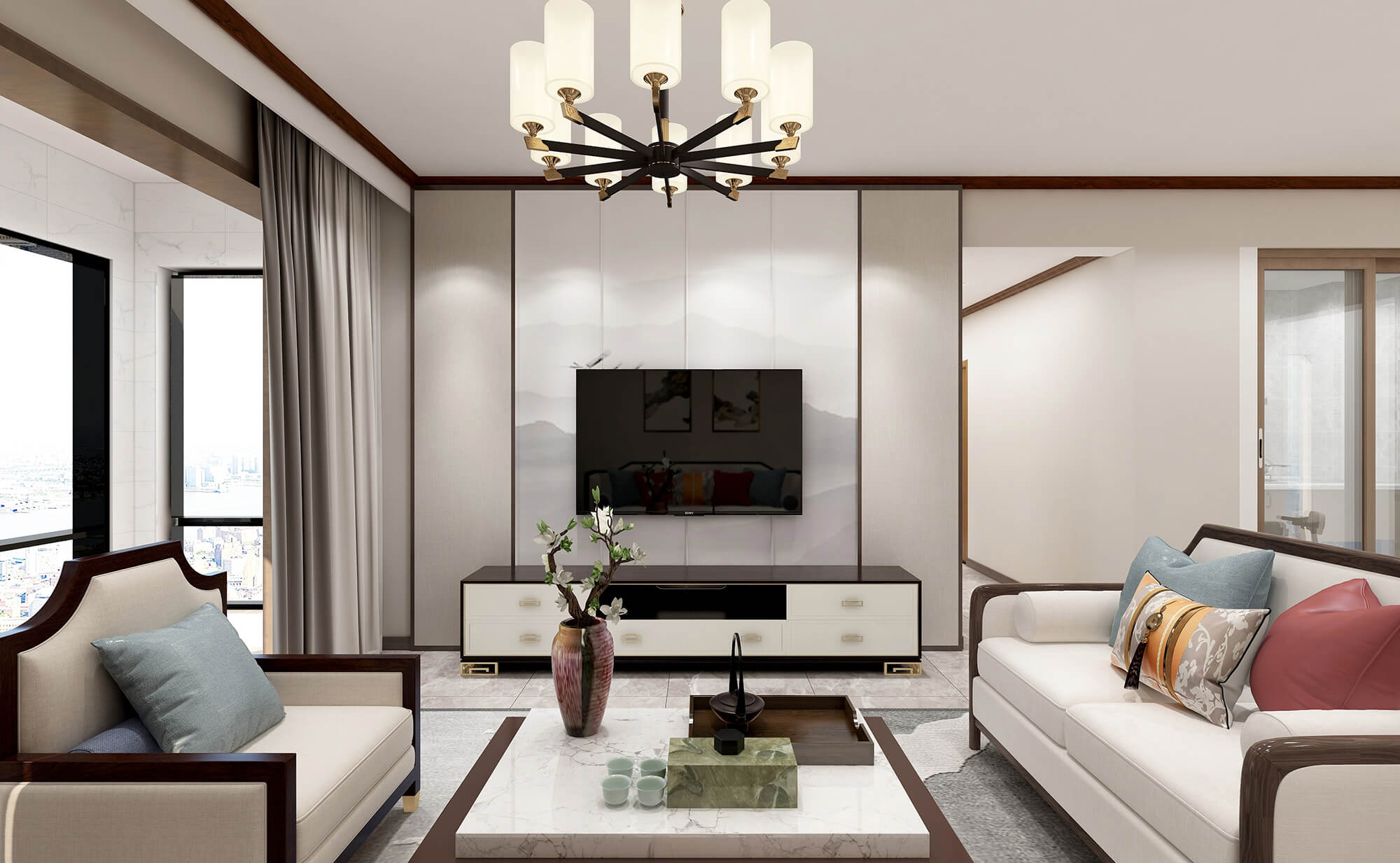 蟠龍小區(qū)125㎡新中式風(fēng)格案例