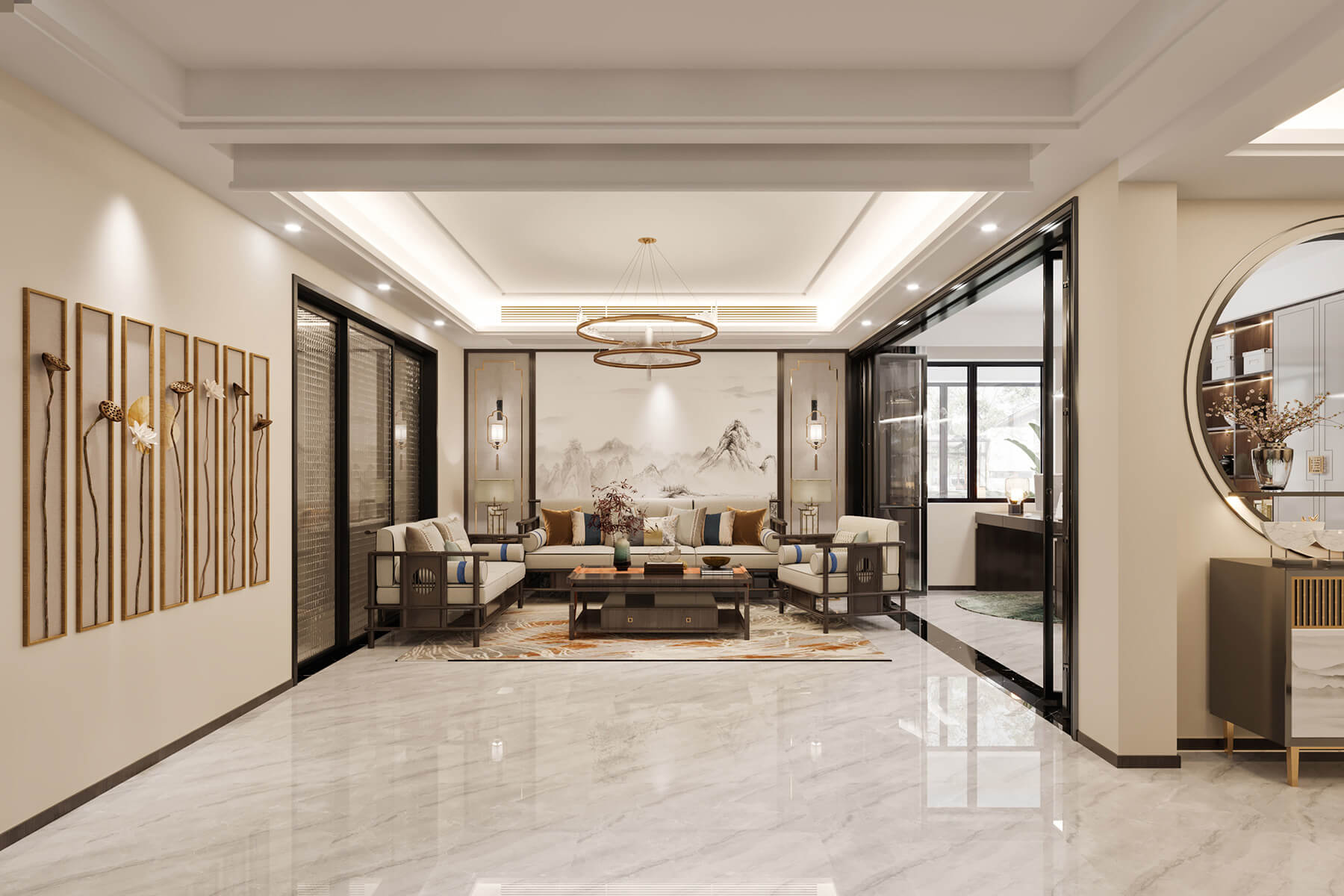 瀏覽量:802本案總面積136㎡,整體采用新中式風(fēng)格設(shè)計。沿襲傳統(tǒng)江南風(fēng)情,蘊藏著悠然詩意的傳統(tǒng)文化在空間中娓娓道來。東方的風(fēng)韻與藝術(shù)的雅致,以簡練的手筆,營建清寧澄凈的氣質(zhì)與芳華。