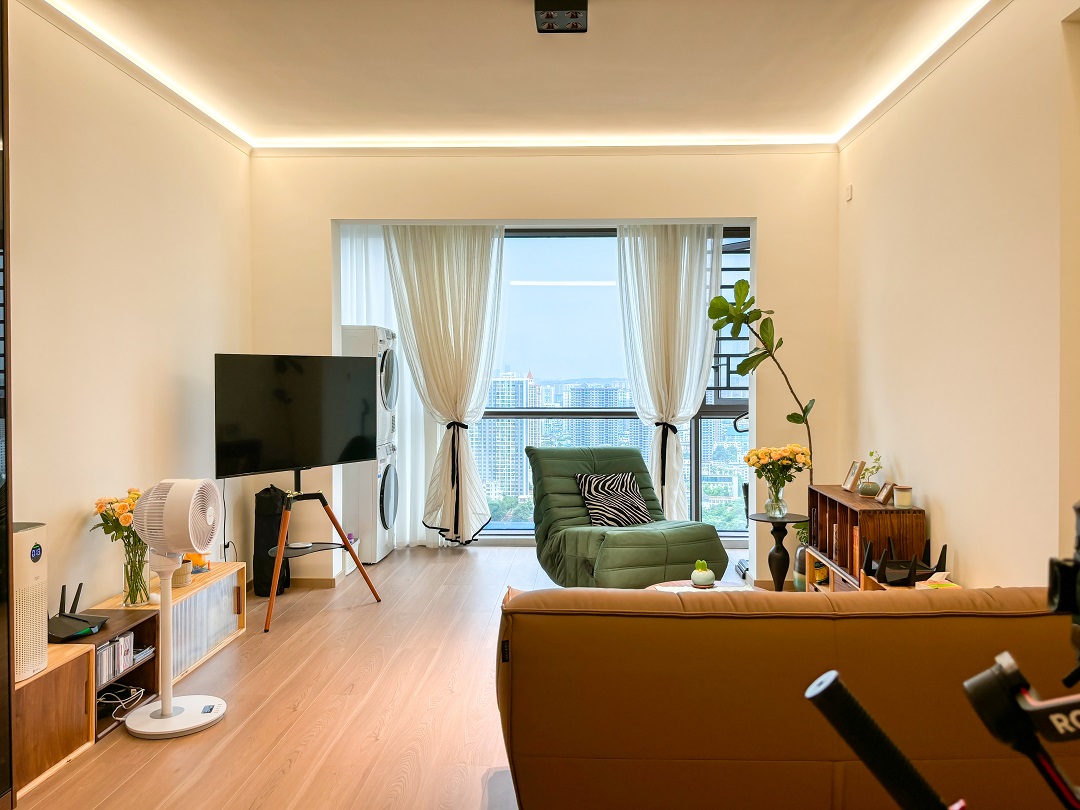 瀏覽量:1241步入家門,一股清新自然的氣息撲面而來。整體空間以淺色調(diào)為主,原木色的地板與家具相互呼應,仿佛置身于北歐森林的懷抱中。大面積的玻璃窗引入自然光線,與室內(nèi)溫暖的燈光交織,營造出一種溫馨而不失明亮的氛圍。