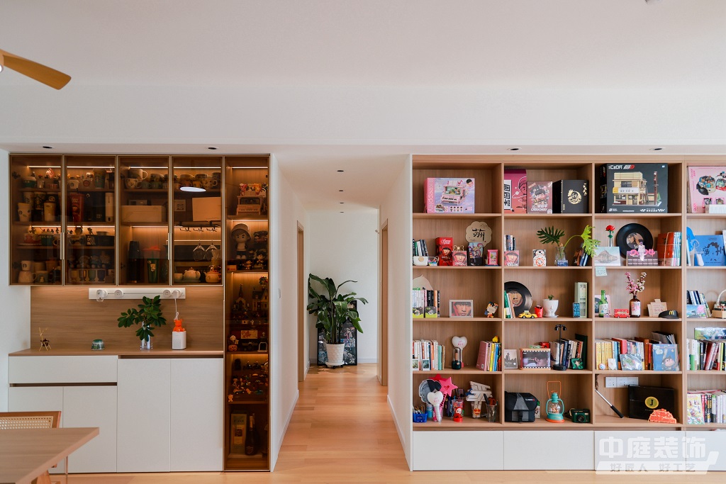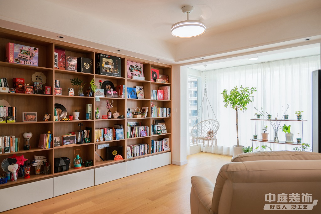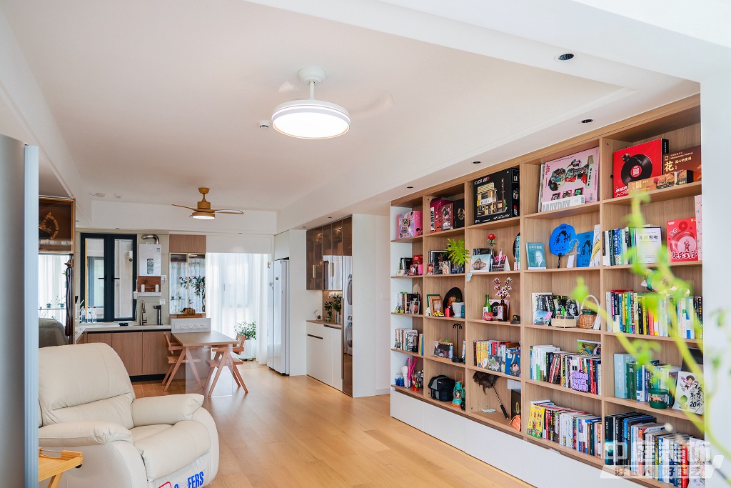 瀏覽量:889仿佛步入了一個自然與簡約交織的溫馨空間。淺色調(diào)的木質(zhì)地板營造出一種質(zhì)樸而不失高雅的氛圍??蛷d中央,去客廳化的設計,一排原木色到頂書架擺滿精心挑選的物件和書籍,一進門就能感受家的溫暖。