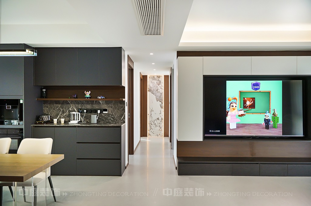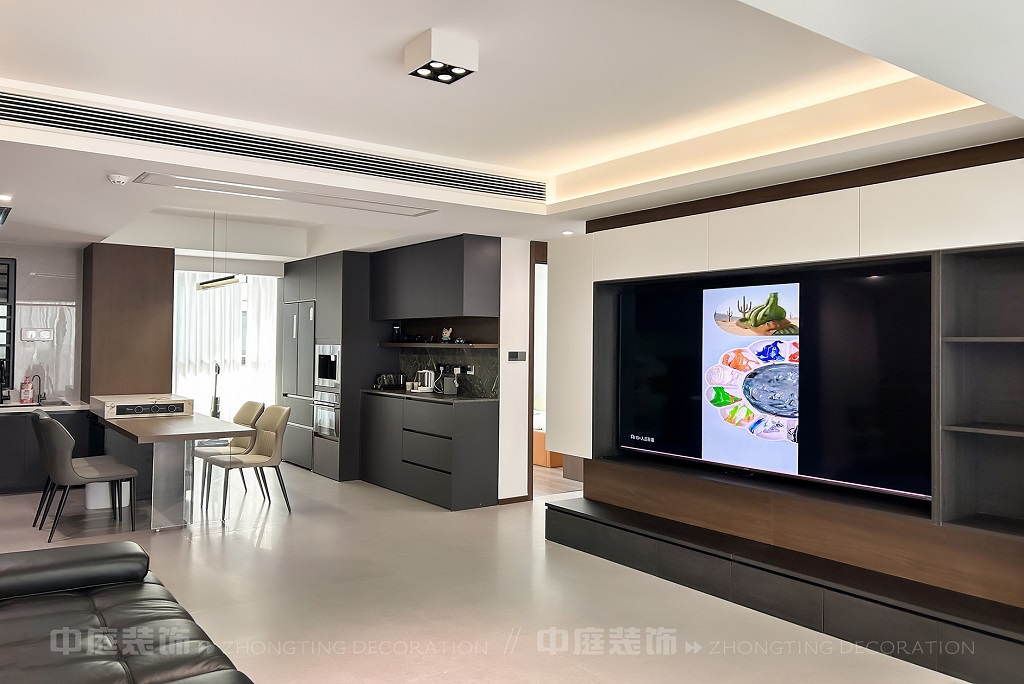 瀏覽量:72客廳以現(xiàn)代黑白灰極簡(jiǎn)風(fēng)格為核心,大面積白紗簾引入自然光線(xiàn),黑色皮質(zhì)沙發(fā)質(zhì)感高級(jí)。開(kāi)放式布局,深灰櫥柜與木質(zhì)餐桌形成材質(zhì)對(duì)比,線(xiàn)性吊燈提升精致感,功能與美學(xué)兼具,營(yíng)造現(xiàn)代簡(jiǎn)約的烹飪用餐氛圍。輕柔窗簾與柔和燈光,打造靜謐休息空間。精致的材質(zhì)選擇與合理的功能規(guī)劃,詮釋了“少即是多”的現(xiàn)代簡(jiǎn)約居住美學(xué)。