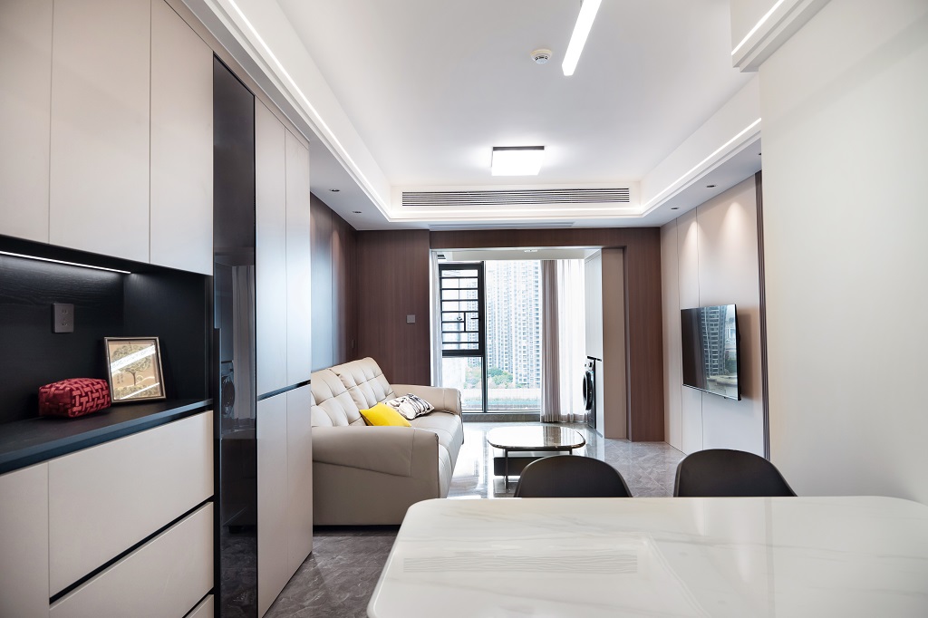 瀏覽量:95整體是簡約高級的風格,米棕色調(diào)溫柔又大氣,朋友來都夸很有質(zhì)感!皮質(zhì)沙發(fā)癱著超舒服,亮黃色抱枕一下子讓空間活潑起來~ 收納做得很隱蔽,家里永遠整整齊齊。臥室的窗簾一拉,就是專屬的靜謐小天地。在這樣的家里,吃飯、追劇、發(fā)呆,每一刻都好愜意~這大概就是把日子過成詩的感覺吧~