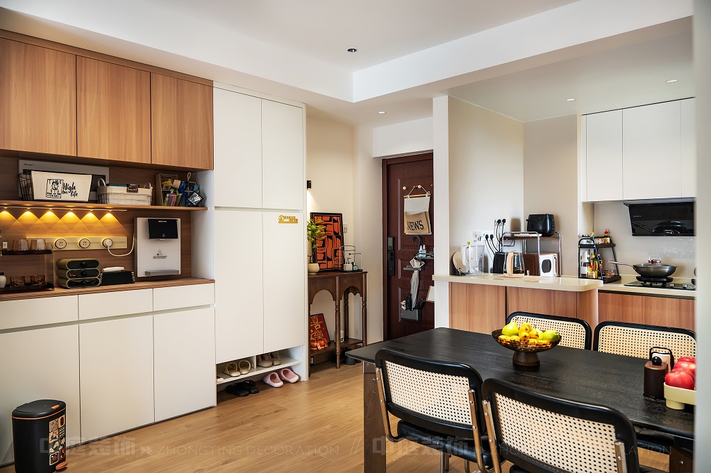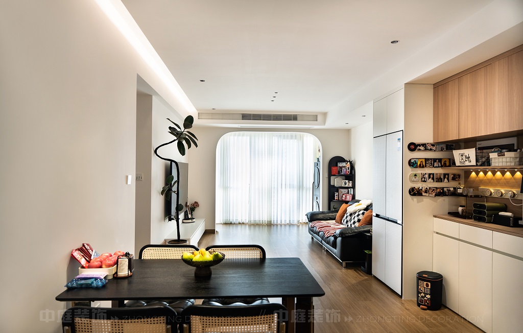 瀏覽量:109每一處細(xì)節(jié),都是他們對(duì)“把日子過成詩,讓家裝滿故事”的詮釋。以原木的溫潤、白調(diào)的清爽為基底,在玄關(guān)處嵌入復(fù)古邊幾,擺上藝術(shù)感的裝飾畫,仿佛時(shí)光在此打了個(gè)溫柔的結(jié);餐廚區(qū)的咖啡角裝滿對(duì)生活的小確幸,與開放式廚房的煙火氣交融,是晨起的咖啡香與深夜的飯菜香的浪漫邂逅;客廳里,黑色皮沙發(fā)搭配復(fù)古風(fēng)抱枕,一旁的藝術(shù)綠植蜿蜒生長,就像主人對(duì)生活的熱愛肆意又熱烈。