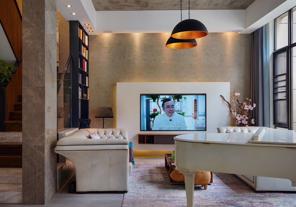 瀏覽量:101這套房子裝修風(fēng)格是工業(yè)風(fēng)與輕奢風(fēng)的巧妙融合,日常又不失格調(diào)。水泥質(zhì)感的吊頂保留了工業(yè)風(fēng)的粗獷感,搭配暖黃色的吊燈,瞬間讓空間溫馨起來(lái)。墻面采用質(zhì)感石材與簡(jiǎn)約板材結(jié)合,電視背景墻的設(shè)計(jì)簡(jiǎn)潔大氣。家具選擇了皮質(zhì)的輕奢款沙發(fā),觸感舒適且顯質(zhì)感。樓梯區(qū)域很有特色,木質(zhì)臺(tái)階搭配金屬扶手,旁邊的綠植和書架為空間增添了生機(jī)與文藝氣息。還有那架白色鋼琴,讓整個(gè)家在日常中多了一份藝術(shù)氛圍,無(wú)論是休閑還是待客,都能感受到這份融合了工業(yè)硬朗與輕奢精致的舒適日常。