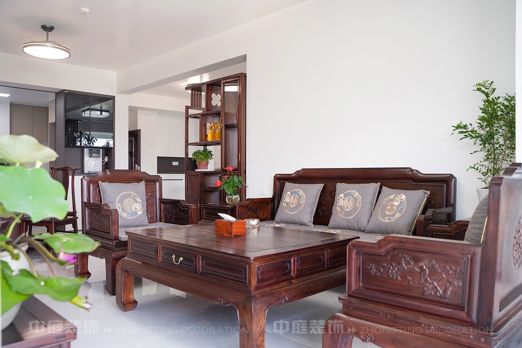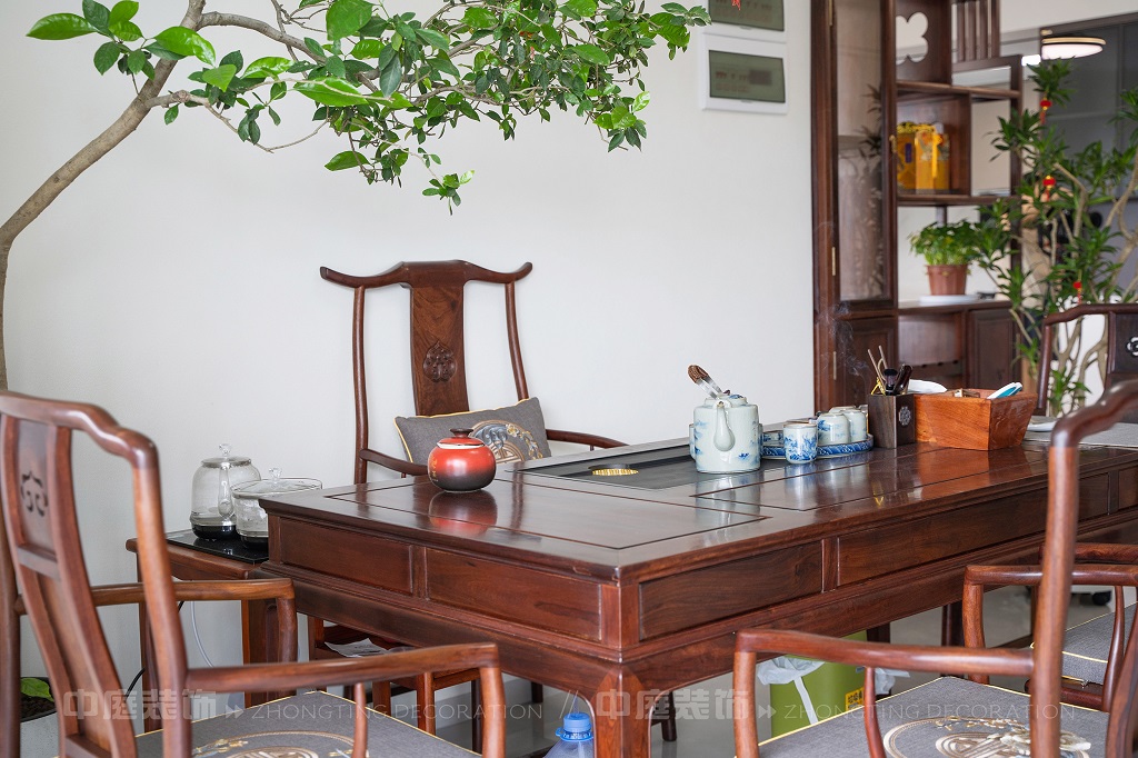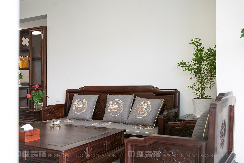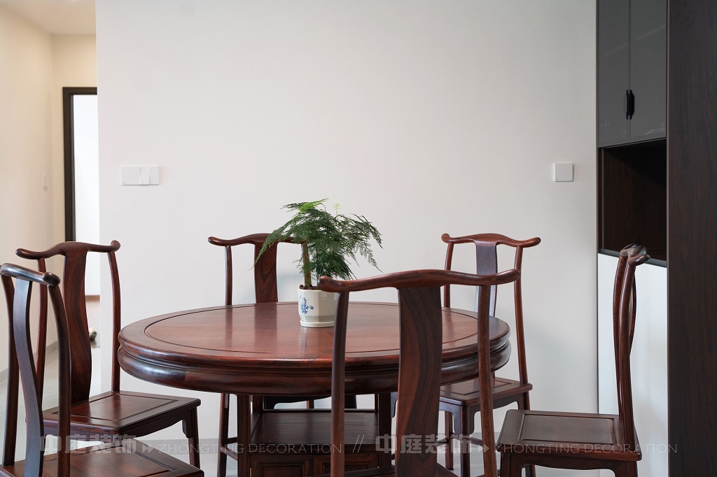 瀏覽量:169全屋以深色實木家具為主,雕花工藝精致細膩,盡顯中式家具的古樸質(zhì)感。搭配帶有傳統(tǒng)紋樣的抱枕,在細節(jié)處傳遞中式美學。空間中綠植點綴其間,與木質(zhì)家具相得益彰,營造出自然清新的氛圍。無論是客廳的沙發(fā)組合,還是茶室的茶桌茶具,亦或是餐廳的圓桌設計,都在簡約的現(xiàn)代空間里,勾勒出中式家居的典雅與詩意。
