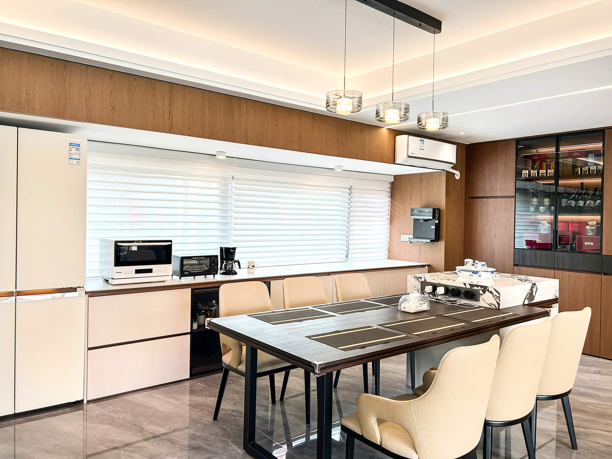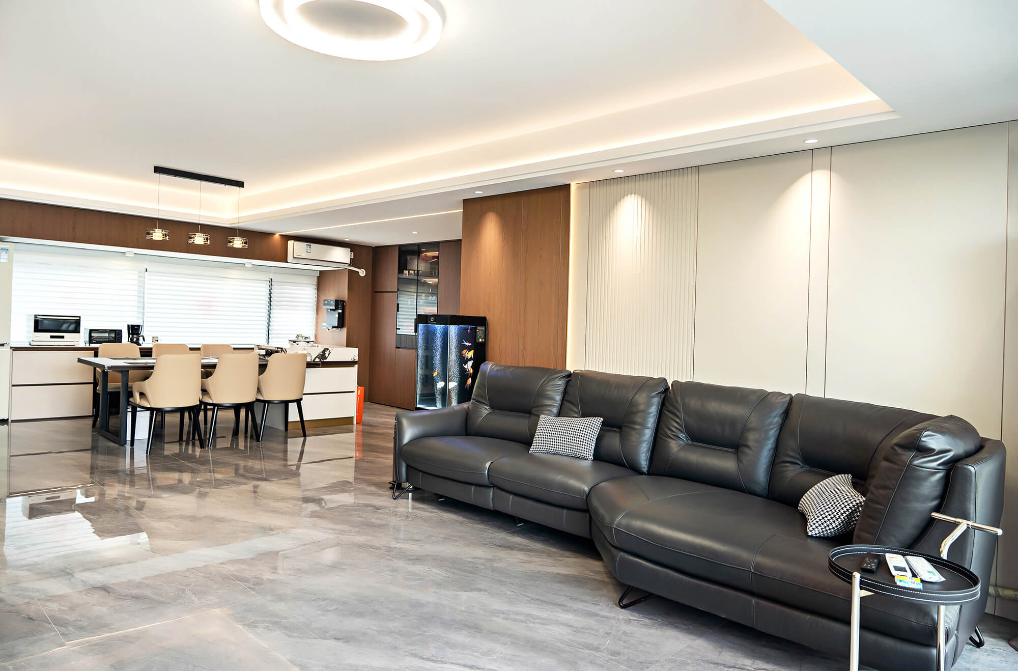 瀏覽量:265以 “少即是精” 為核心,用純粹線條與留白奠定基調(diào),搭配金屬巖板等質(zhì)感材質(zhì)作為點(diǎn)綴,拒絕冗余裝飾。色彩以低飽和度中性色為主,通過材質(zhì)碰撞凸顯高級(jí)感,營造克制而精致、兼具舒適與格調(diào)的空間氛圍。