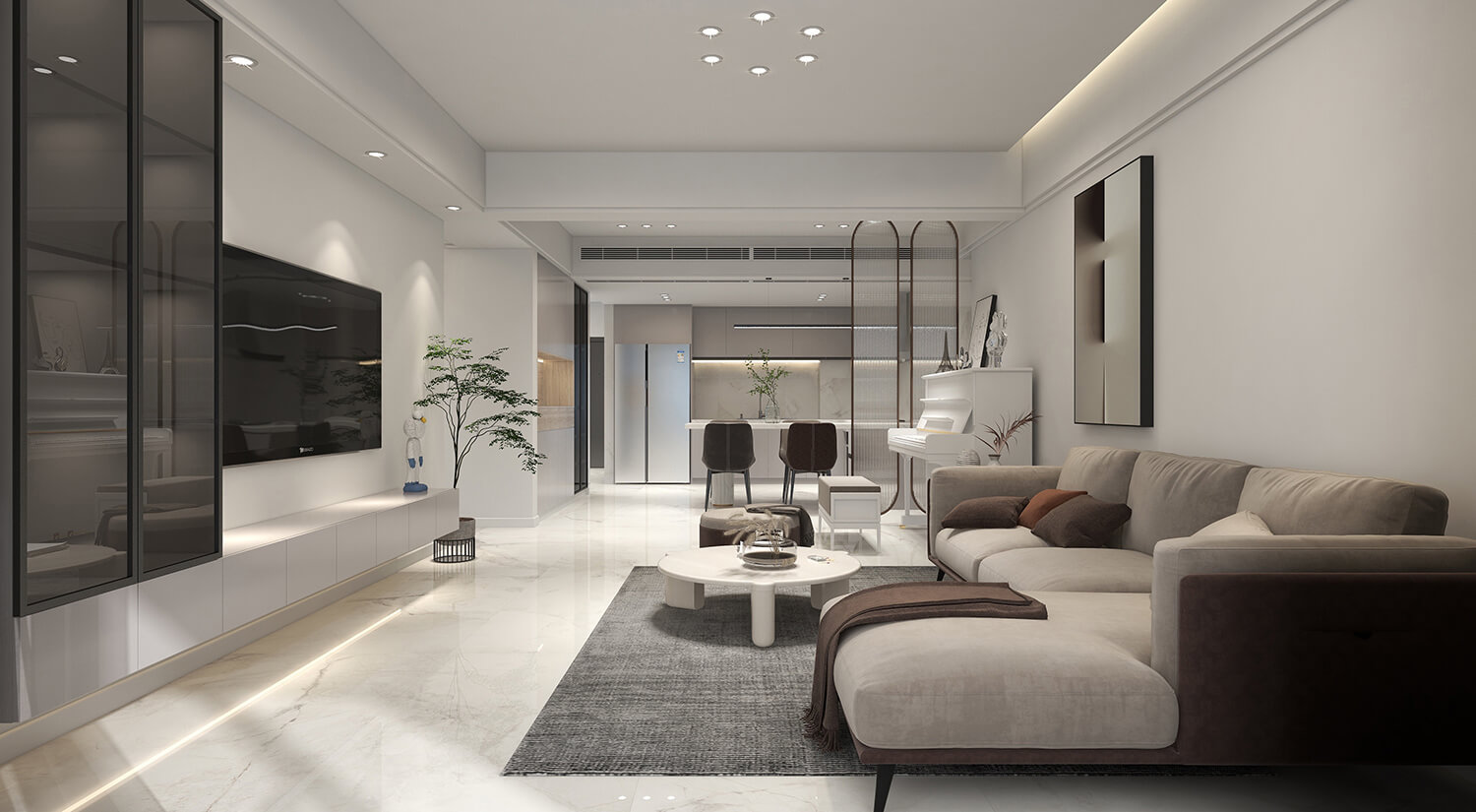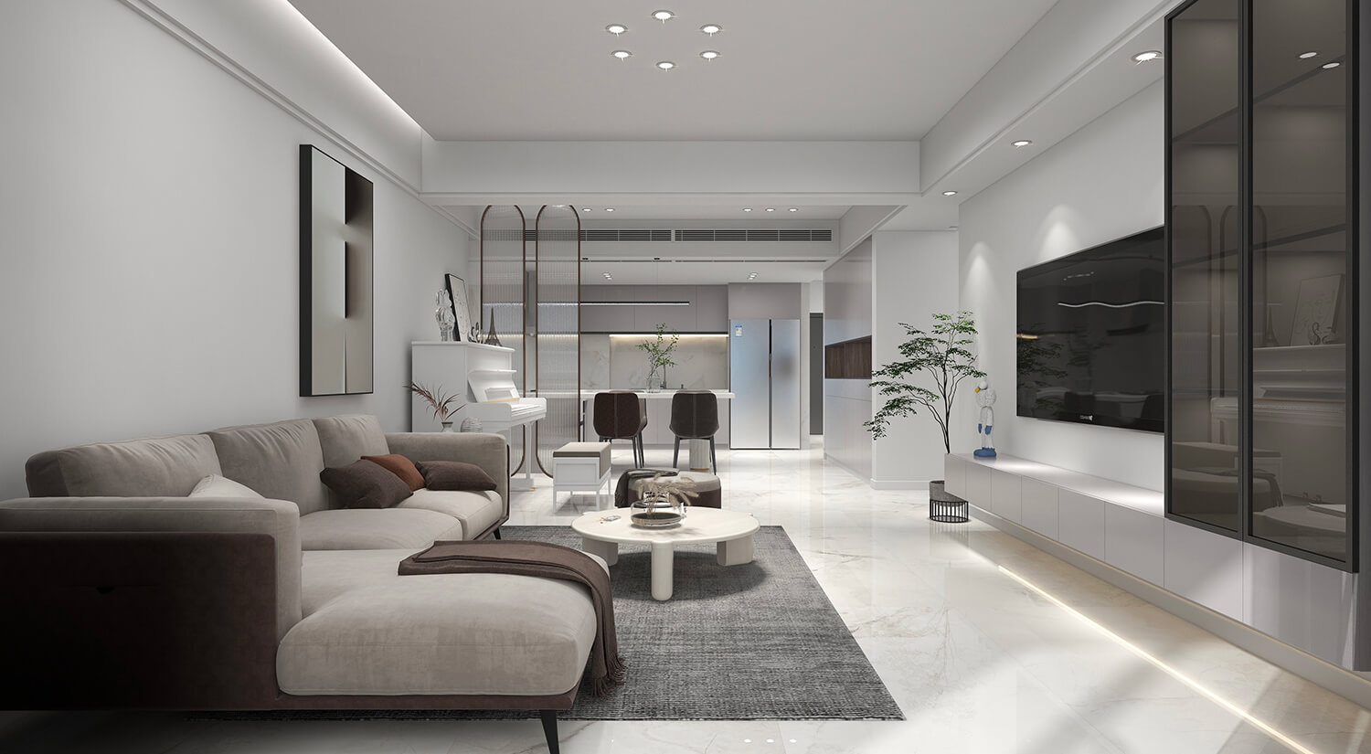 本案例戶型為:3房1廳2衛(wèi),總面積149㎡。現(xiàn)代簡約風格以極簡的線條、簡潔的色彩和純粹的形式為主要特征的室內設計風格。在這個案例的設計中,避免過多的裝飾和復雜的紋理,力求簡單、清爽和現(xiàn)代感。