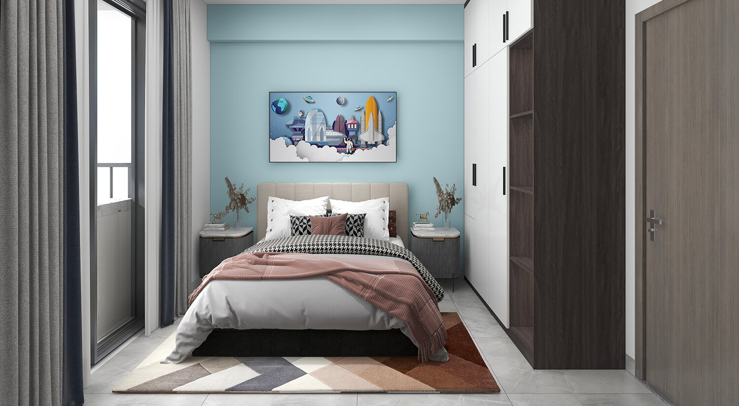 瀏覽量:282本案例戶型為:3房1廳1衛(wèi),總面積99㎡。在房間的布局上,現(xiàn)代簡約風(fēng)格強(qiáng)調(diào)實用性和舒適感。布局簡潔明了,避免過多的家具和裝飾品,力求創(chuàng)造出整潔、明亮和開放的空間感。
