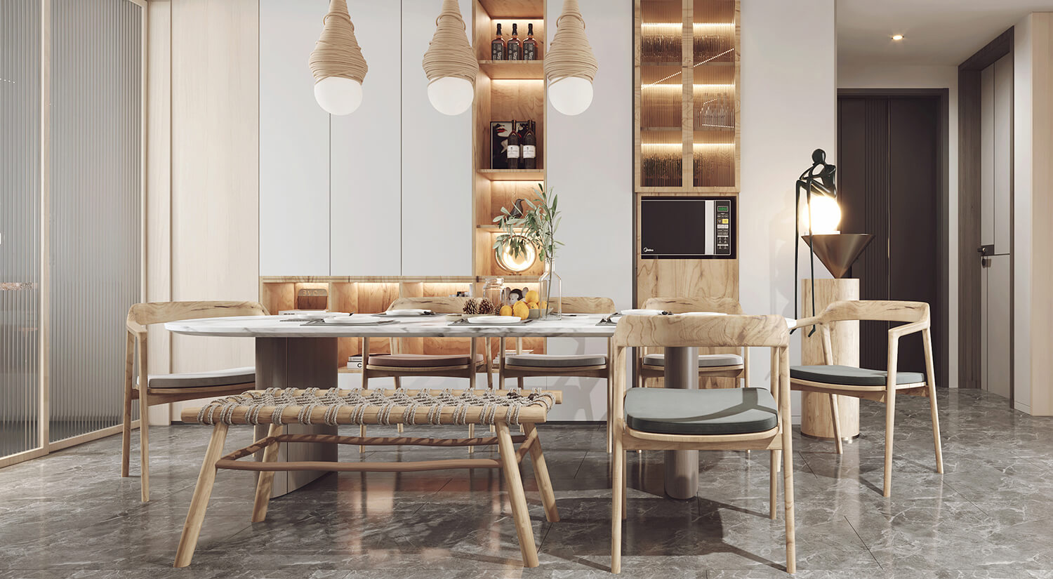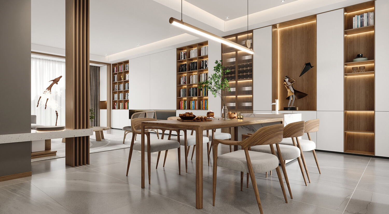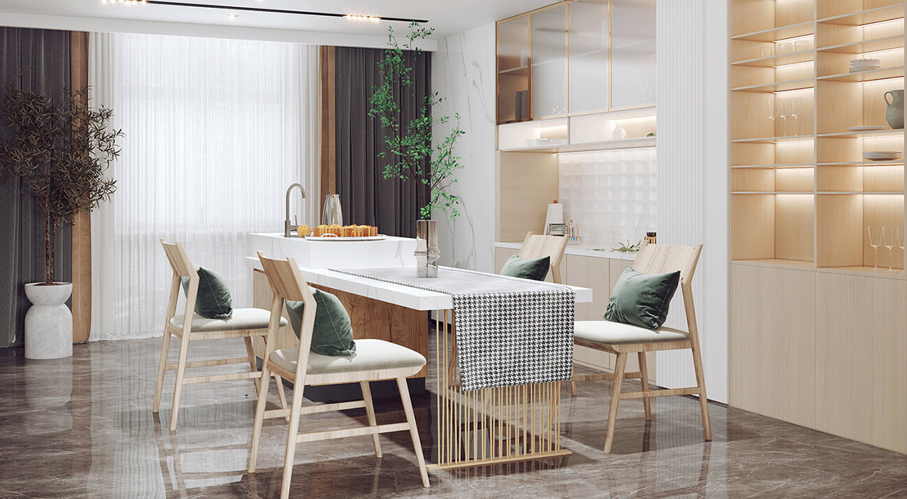 瀏覽量:512客餐廳使用了大量的木質(zhì)材料做家具,房間呈現(xiàn)自然、溫暖和舒適的感覺。