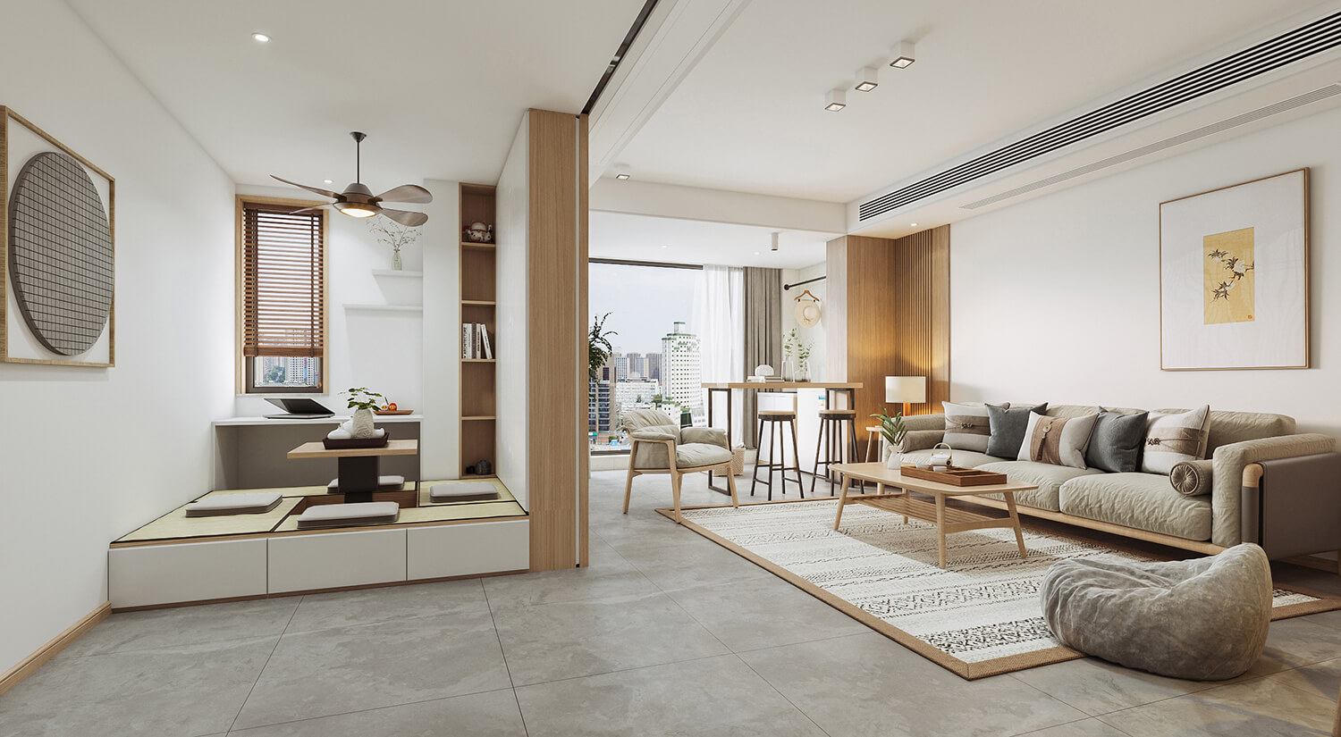 天然的材質,簡約的線條,使居住環(huán)境舒適溫馨。日式風格比較注重空間的分隔以及它的流動,空間感很明朗。